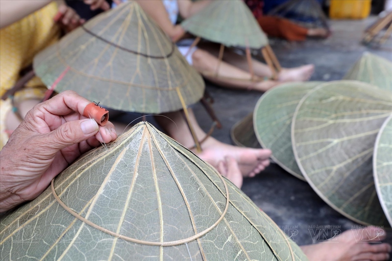 Dù chỉ là vài thao tác đơn giản, nhưng bạn sẽ cảm nhận được sự công phu và kiên nhẫn cần có để hoàn thành một chiếc nón hoàn chỉnh.